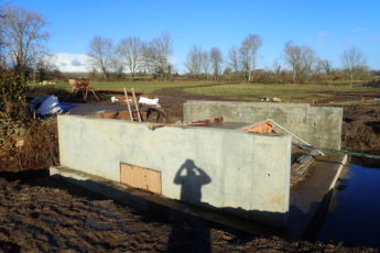 Après chaque mise en eau du nouveau tracé, les opérations de comblement de l’ancien ruisseau s’effectuaient quelques jours après. Avant son comblement, un griffage des berges du lit au godet à dents permettait de générer un dérangement pour « déloger » les espèces et les inciter à aller vers le nouveau lit et cela en complément d’une pêche de sauvetage pour les poissons. Parallèlement à ces travaux de terrassement, deux ouvrages routiers ont été reconstruits.