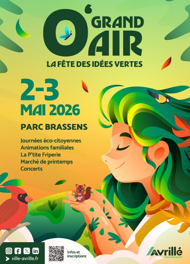 Retrouvez le programme de l’Ă©vènement sur le site de la ville : https://www.ville-avrille.fr/ogrand-air-la-fete-des-idees-vertes/